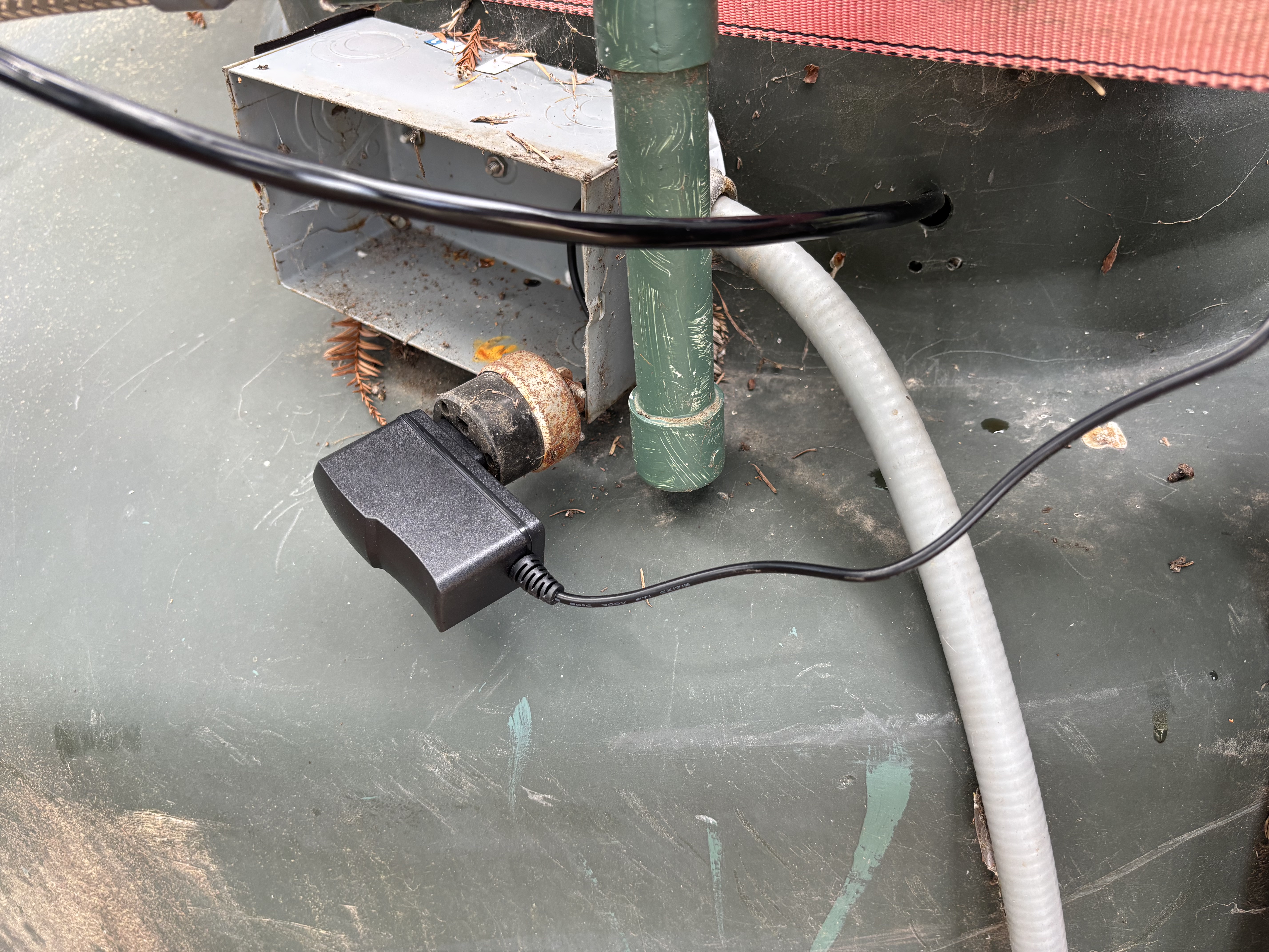 The 12V wall adapter is not weatherproof. Run it into a pump house or garage. The sensor and its cable are fine submerged, but everything else should stay under cover.